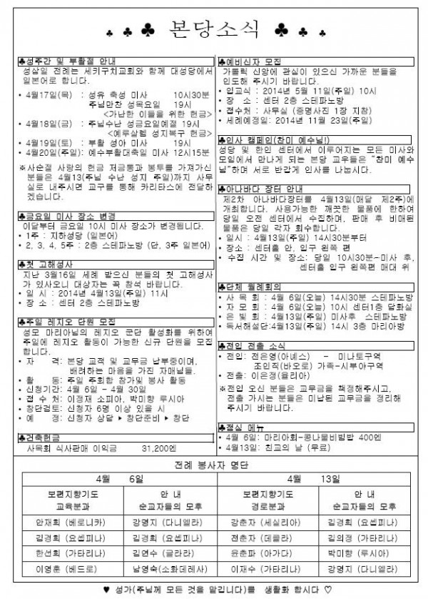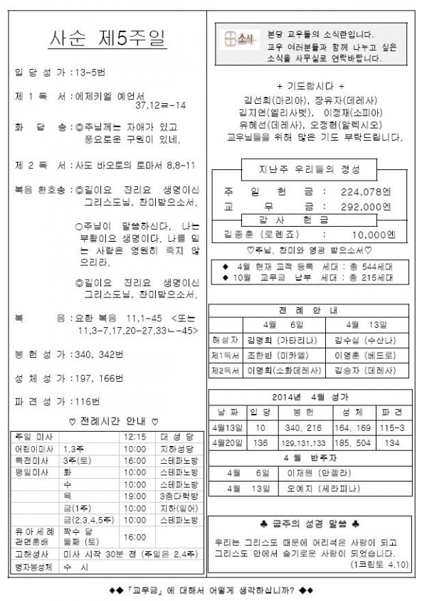 2014年 4月 6日 週報 > 본당주보