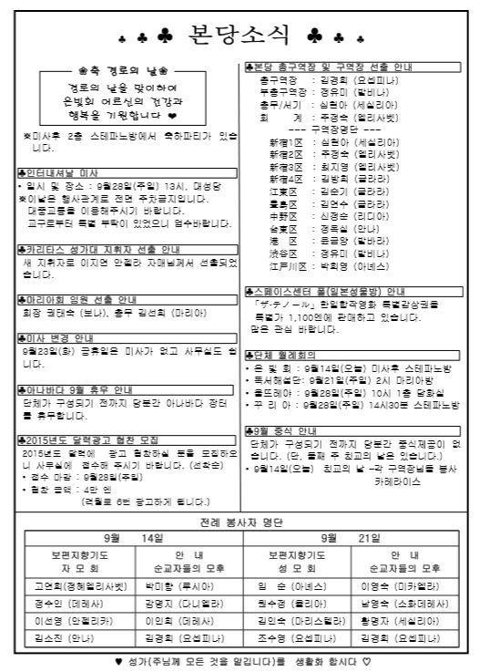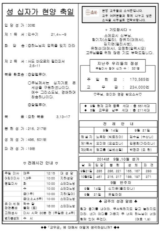 2014年 9月 14日 週報 페이지 정보 작성자 고마영마리아 작성일14-09-15 18:40 조회15,594회 이전글 다음글 목록 본문 2014年 9月 14日 週報 이전글 다음글 목록