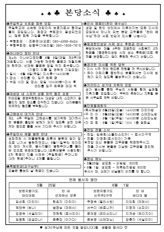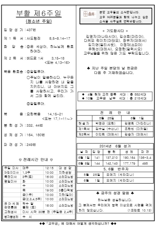 2014年 5月 25日 週報 페이지 정보 작성자 고마영마리아 작성일14-05-25 21:10 조회15,703회 이전글 다음글 목록 본문 2014年 5月 25日 週報 이전글 다음글 목록