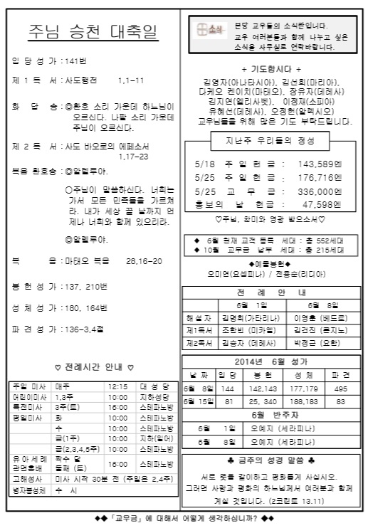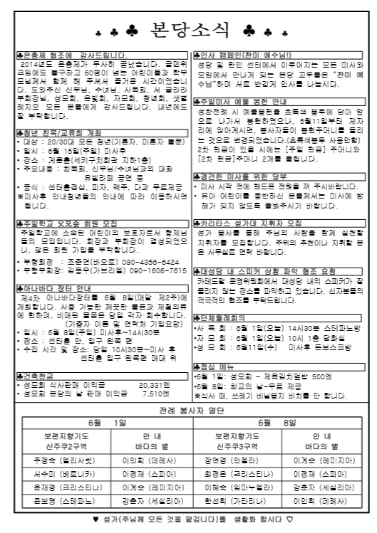 2014年 6月 1日 週報 > 본당주보