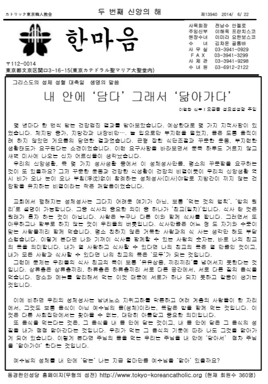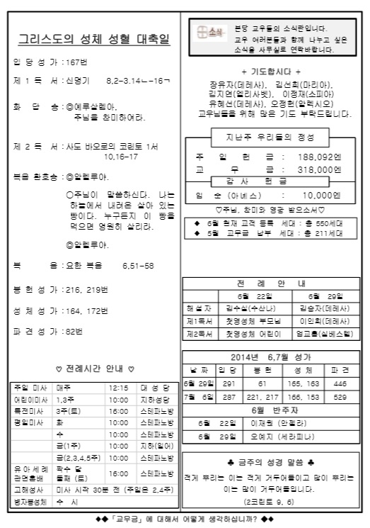 2014年 6月 22日 週報 페이지 정보 작성자 고마영마리아 작성일14-06-25 15:30 조회15,290회 이전글 다음글 목록 본문 2014年 6月 22日 週報 이전글 다음글 목록