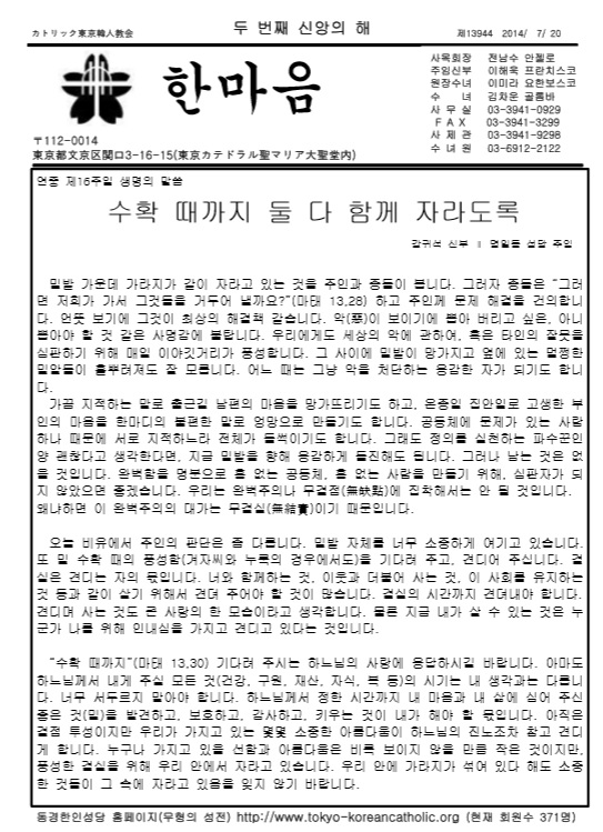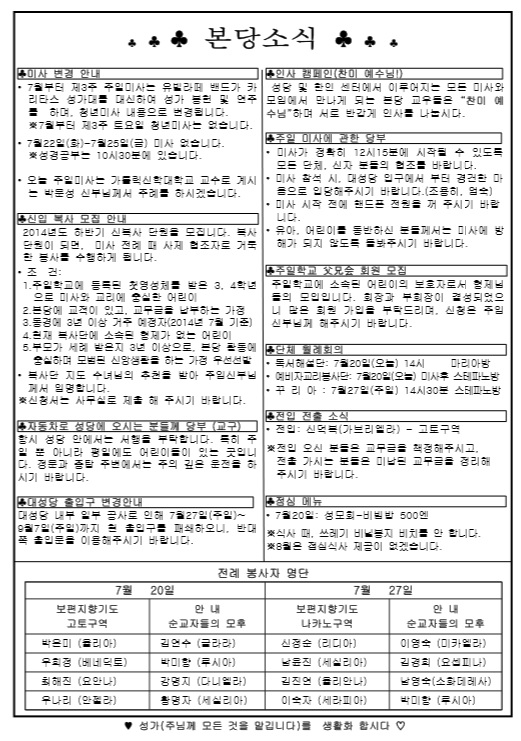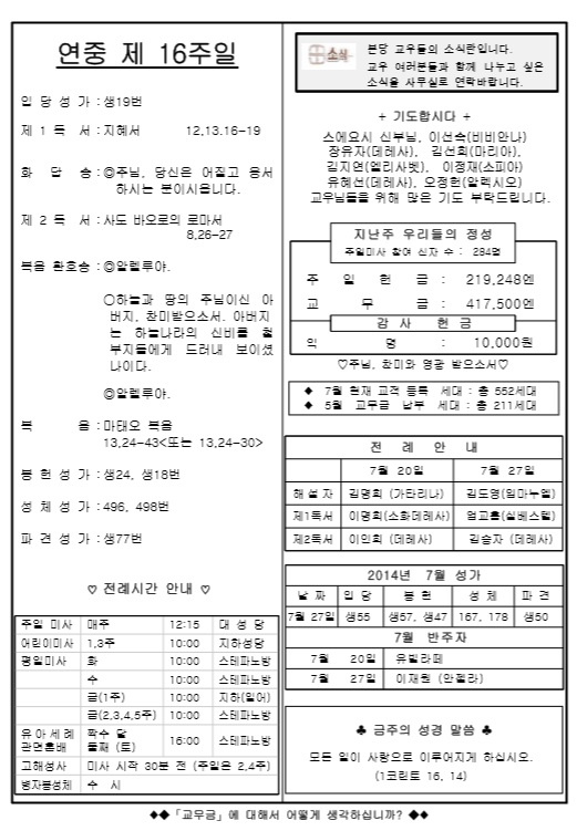 2014年 7月 20日 週報 페이지 정보 작성자 고마영마리아 작성일14-07-23 18:50 조회15,482회 이전글 다음글 목록 본문 2014年 7月 20日 週報 이전글 다음글 목록