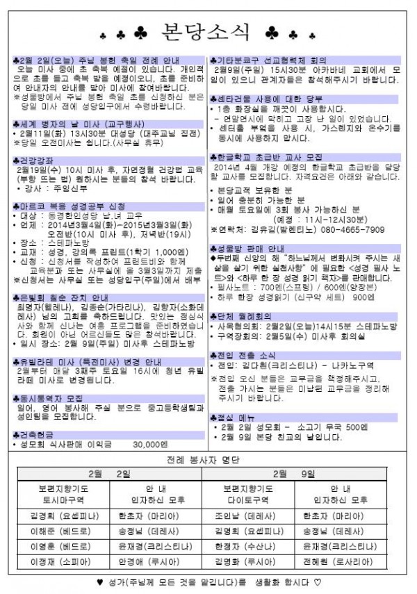 2014年 2月 2日 週報 > 본당주보