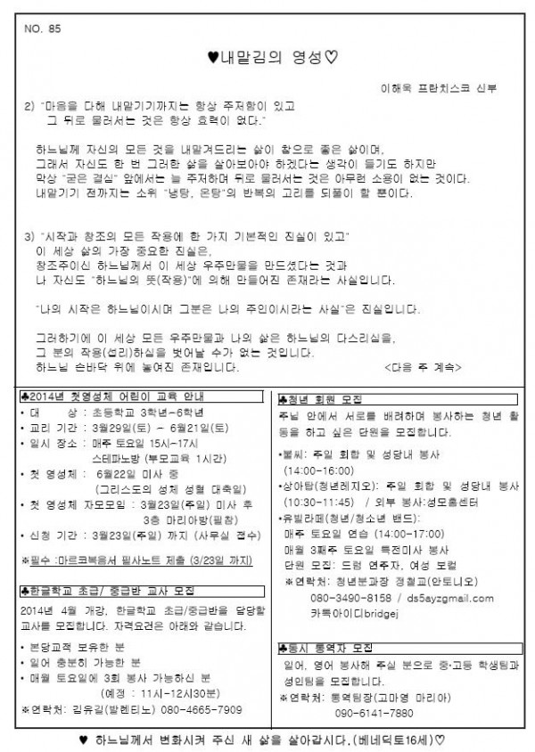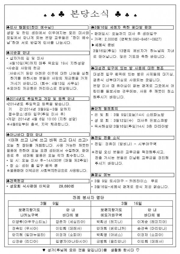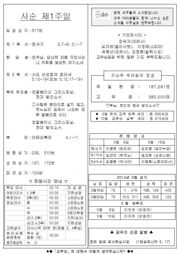 2014年 3月 9日 週報 > 본당주보