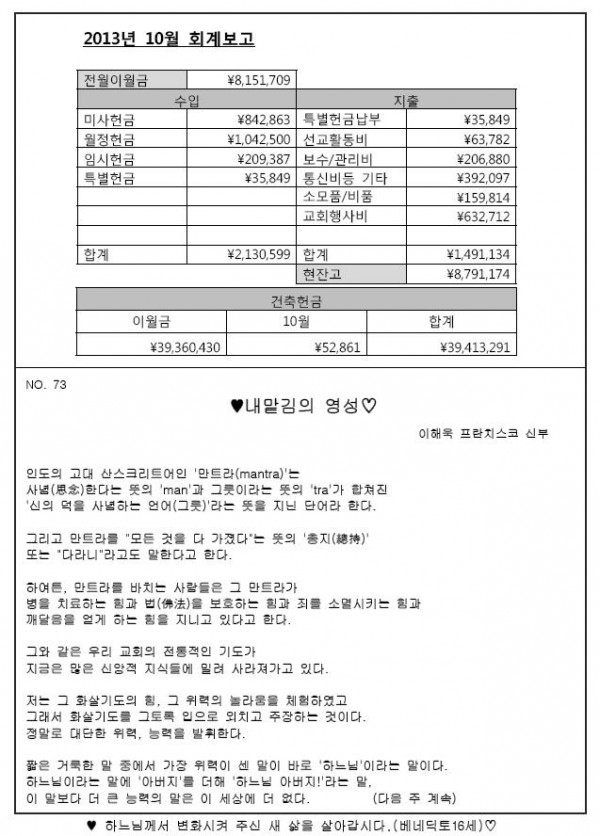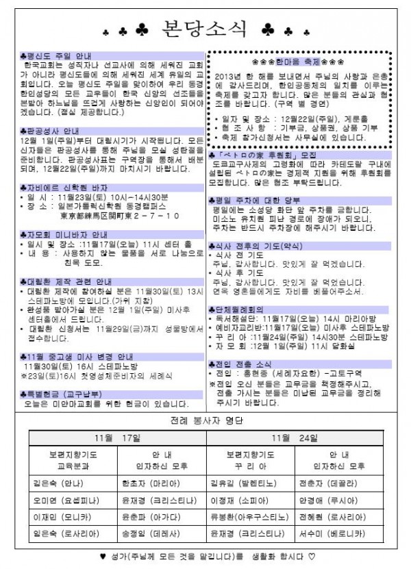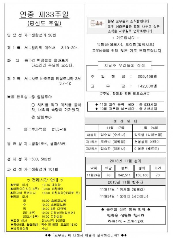 2013年11月17日 週報 > 본당주보