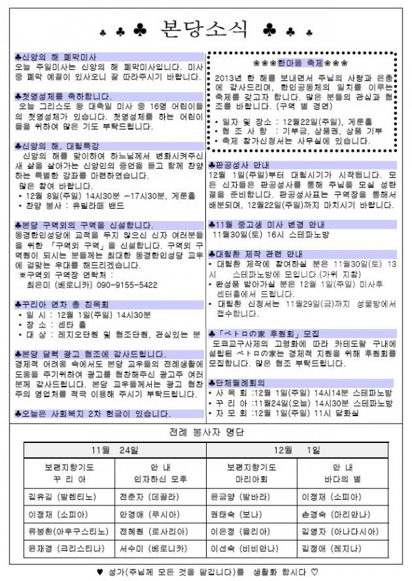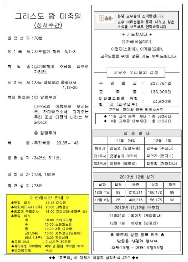 2013年11月24日 週報 > 본당주보