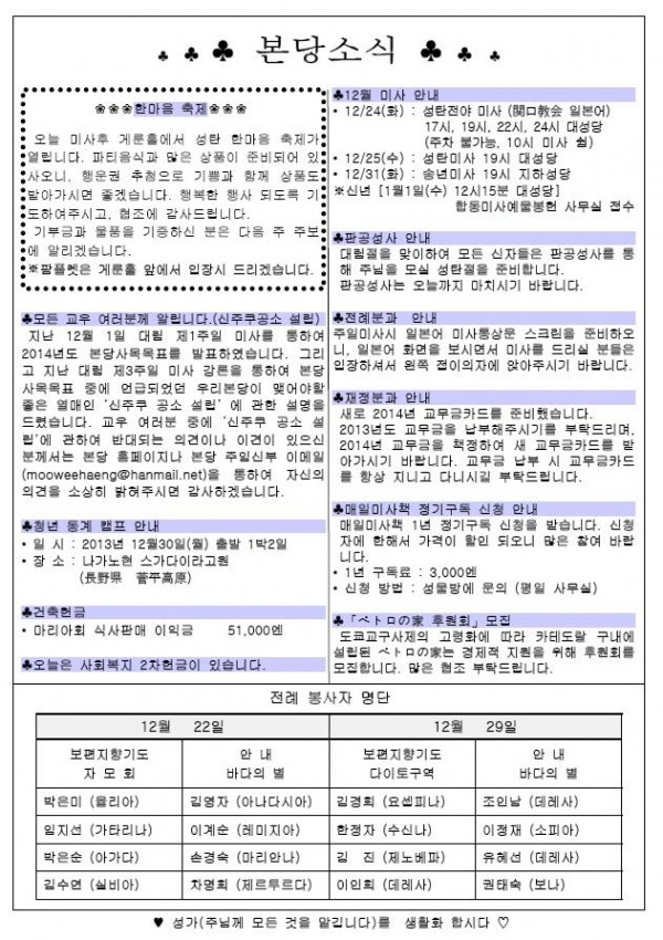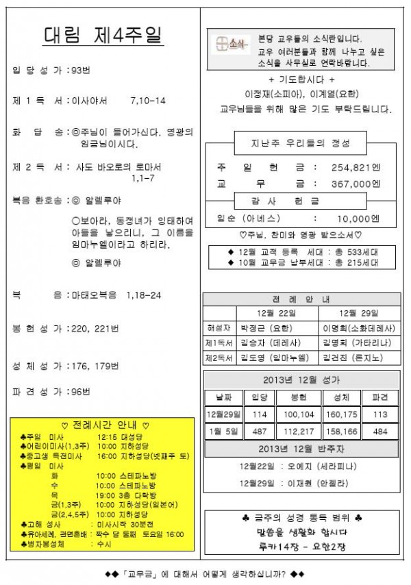 2013年12月22日 週報 > 본당주보