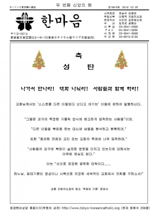 2013年12月25日 週報 > 본당주보