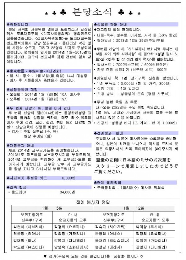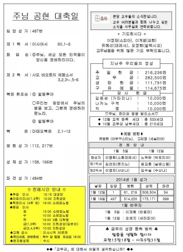 2014年 1月 5日 週報 > 본당주보