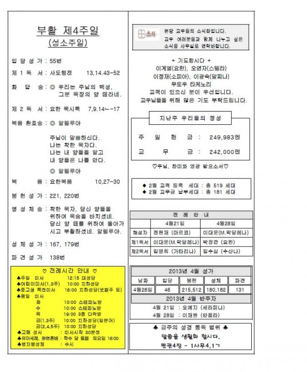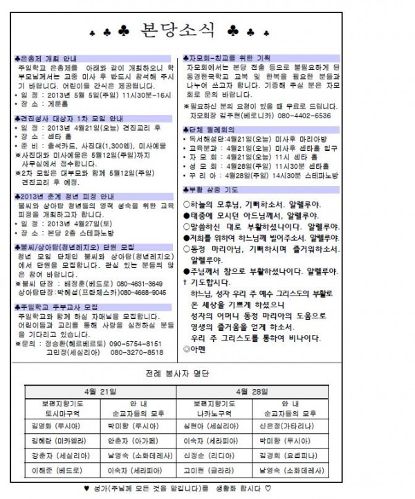 2013年4月21日 週報 > 본당주보