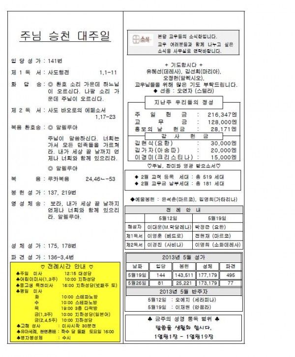 대성당 파이프오르간 수리공사 및 헌금 안내