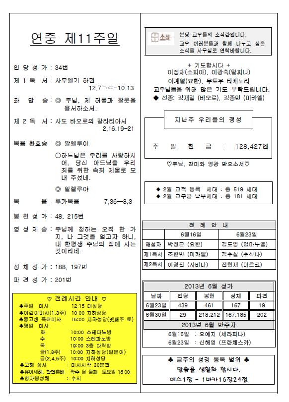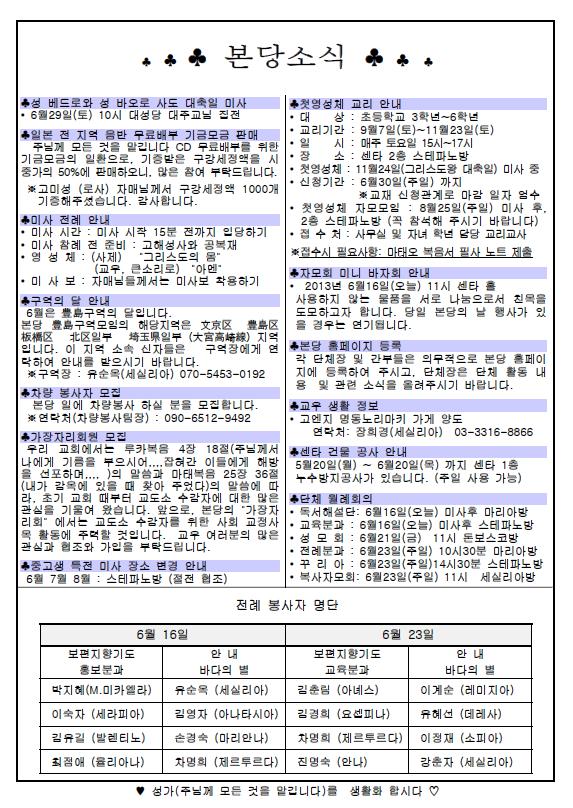 2013年6月16日 週報 > 본당주보