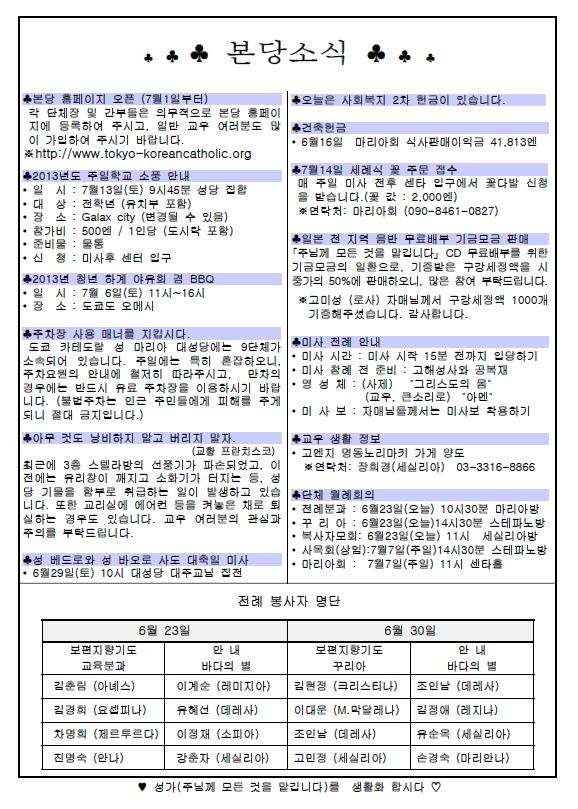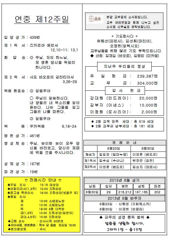 2013年6月23日 週報 > 본당주보