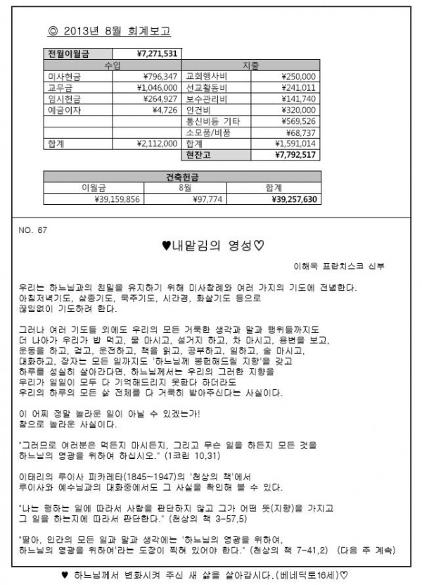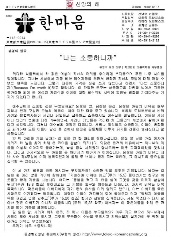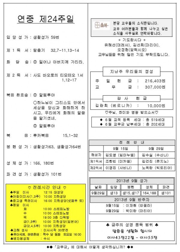 2013年9月15日 週報 > 본당주보
