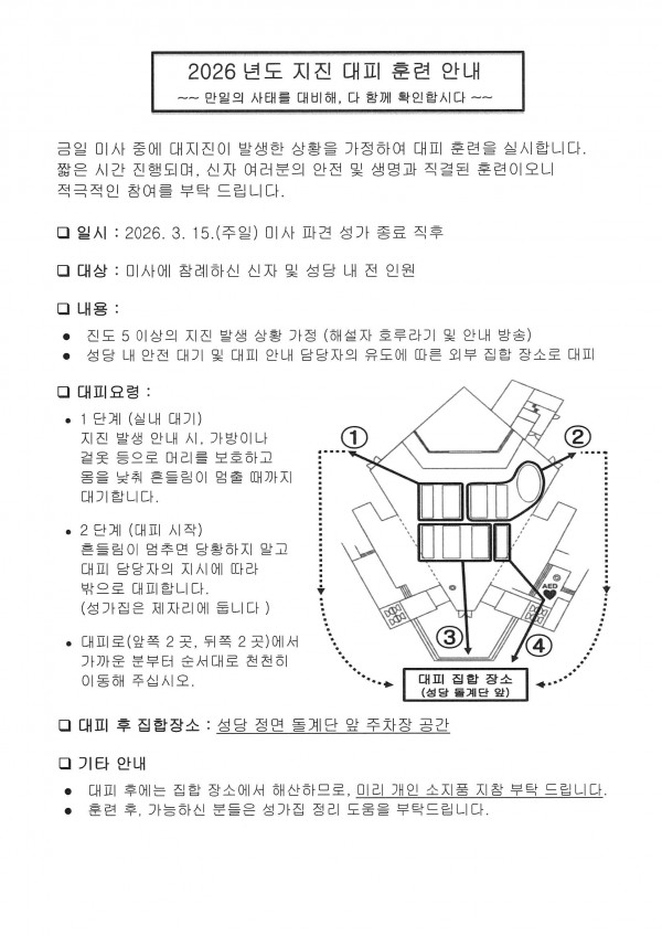 2026년도 지진 대피 훈련 실시 > 공지사항