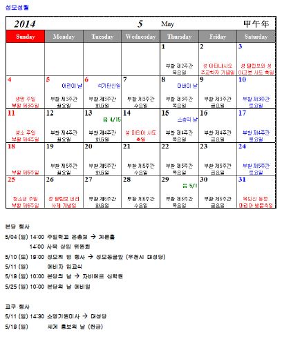2014년 5월 행사표 입니다.