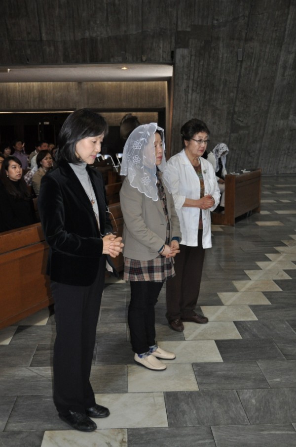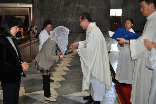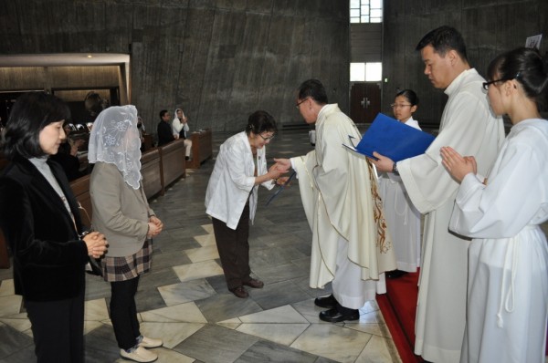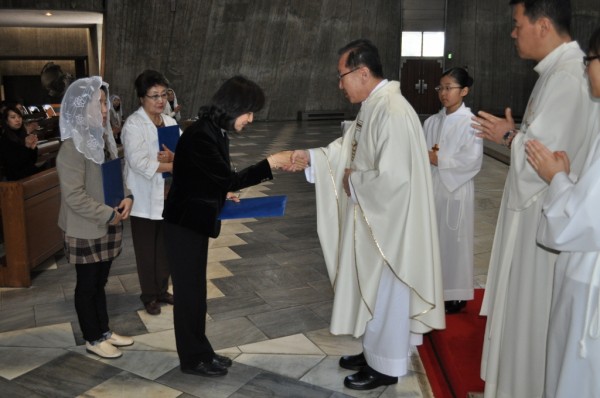 미사중에 봉성체 봉사자 강춘자 세실리아, 유순옥 세실리아, 이정재 소피아 임명식이 있었습니다.