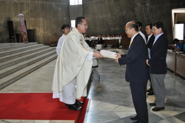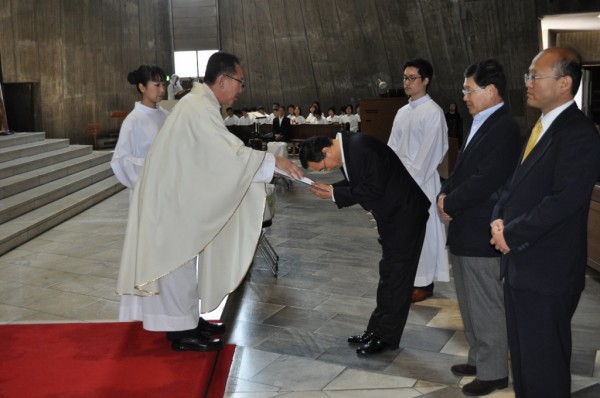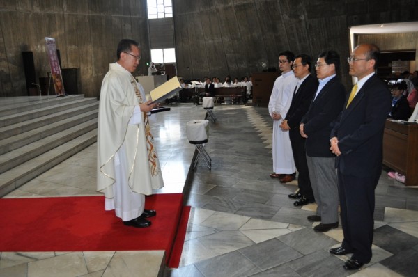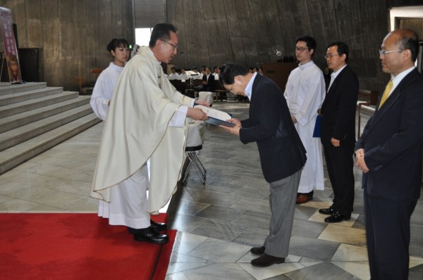 미사중에 성체 분배 봉사자 박정근 요한, 성종현 라우렌시오, 윤석춘 마르코, 김도영 임마누엘의 임명식이 있었습니다.