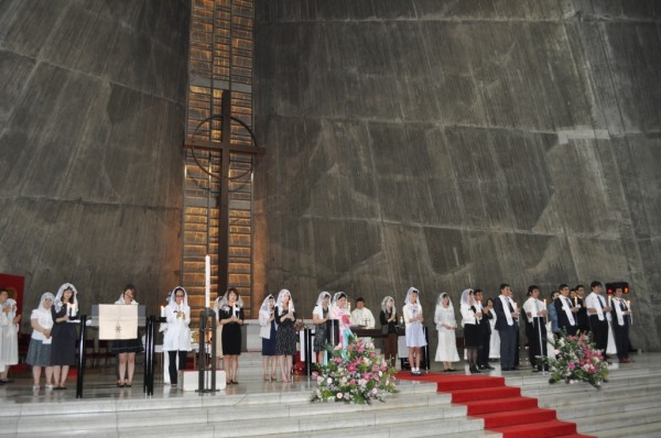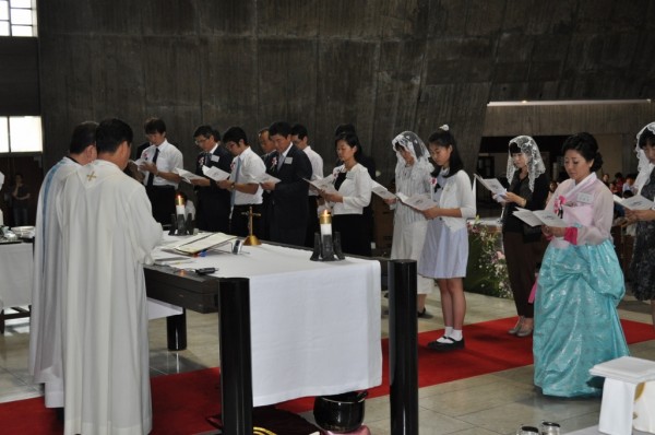 미사중에 13명의 형제자매가 세례를 받고 새로 태어났습니다.