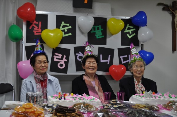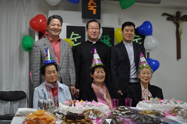 팔순을 맞으신 함기자 스텔라, 강순자 아가다, 그리고 칠순을 맞으신 가토 데레사 어르신들의 칠순 팔순 축하파티가 있었습니다. 앞으로도 영육간에 건강하실 수 있도록 기도드립니다.