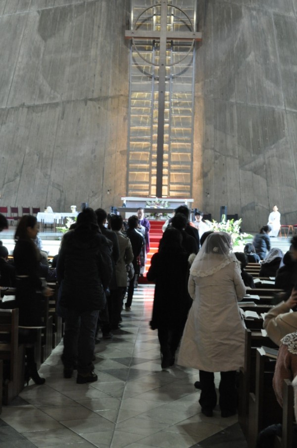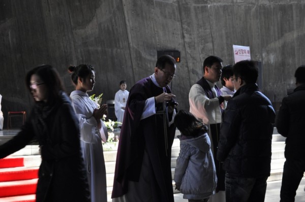 주일 미사 중에 신부님께서 재를 축복하여 머리에 얹는 예식을 거행했습니다.