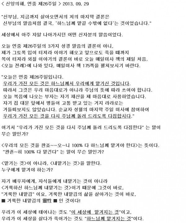 < 신앙의해, 연중 제26주일 > 2013, 09, 29