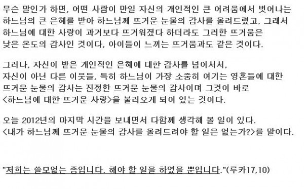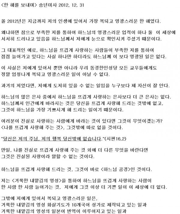 <한 해를 보내며> 송년미사 2012, 12, 31
