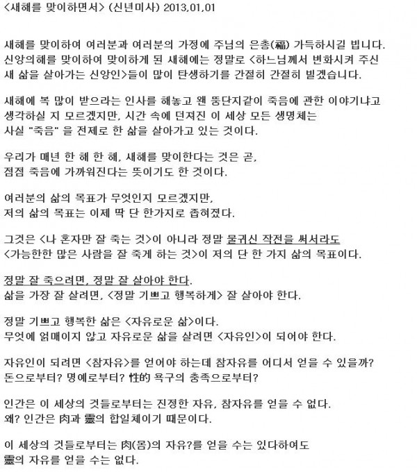 <새해를 맞이하면서> (신년미사) 2013,01,01