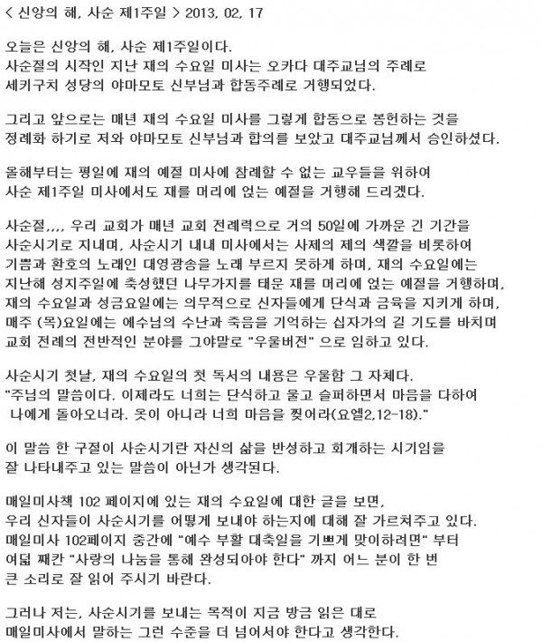 < 신앙의 해, 사순 제1주일 > 2013, 02, 17