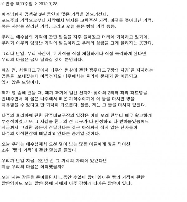 < 연중 제17주일 > 2012,7,28