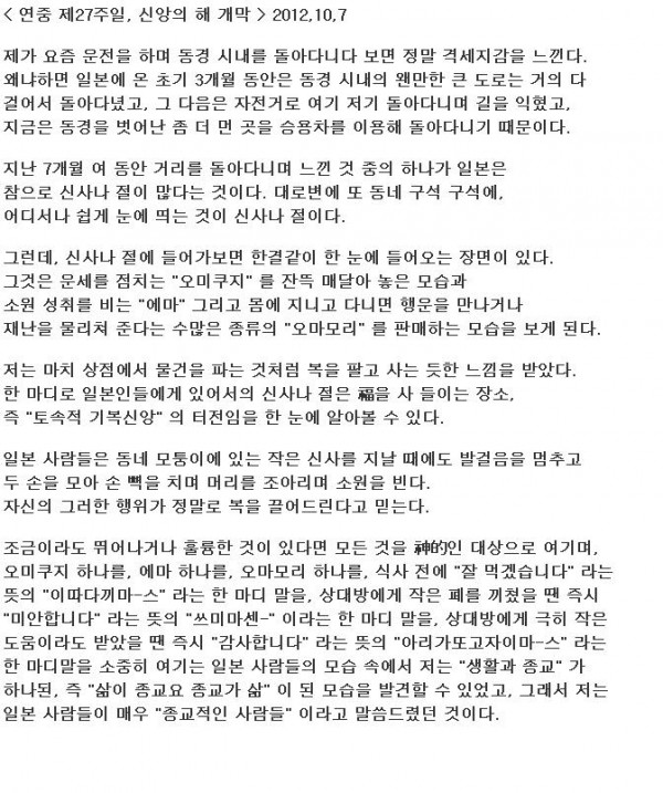 < 연중 제27주일, 신앙의 해 개막 > 2012,10,7