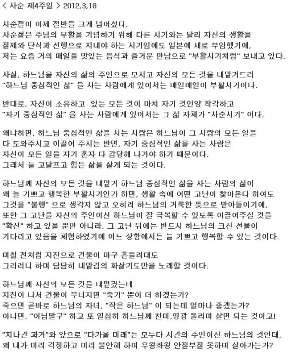 < 사순 제4주일 > 2012,3,18