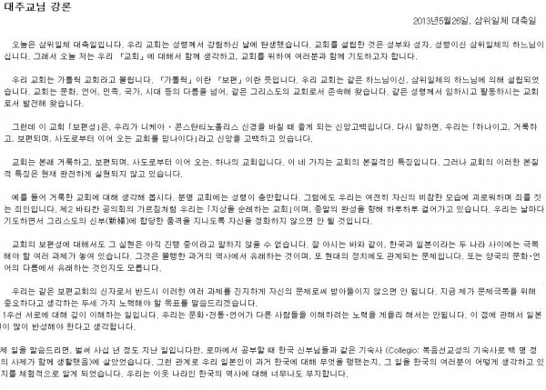 신앙의해, 삼위일체 대축일(2013, 05,26) 대주교님 강론