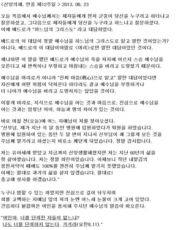 <신앙의해, 연중 제12주일 > 2013, 06, 23
