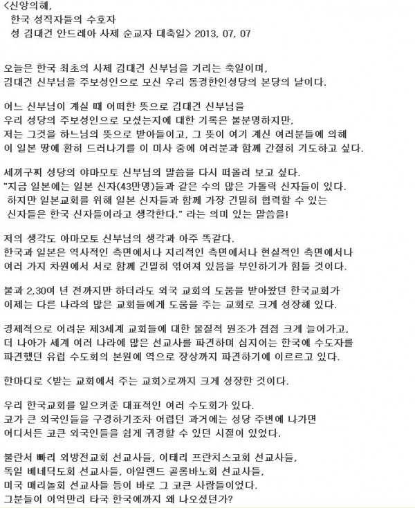 <신앙의해, 한국 성직자들의 수호자 성 김대건 안드레아 사제 순교자 대축일> 2013, 07, 07