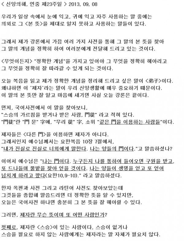 < 신앙의해, 연중 제23주일 > 2013, 09, 08