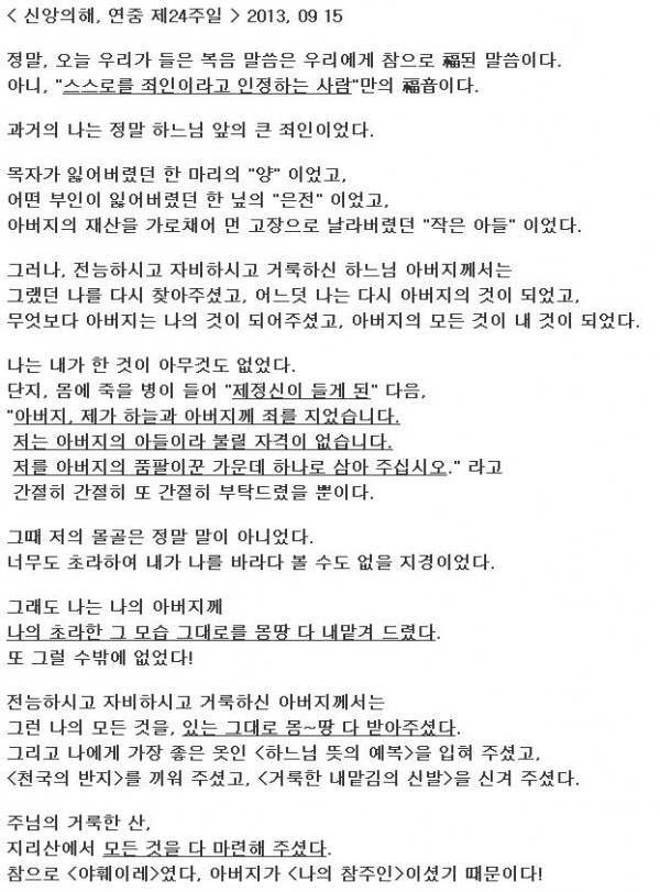 < 신앙의해, 연중 제24주일 > 2013, 09 15
