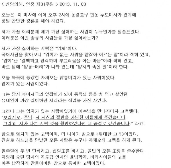 < 신앙의해, 연중 제31주일 > 2013, 11, 03